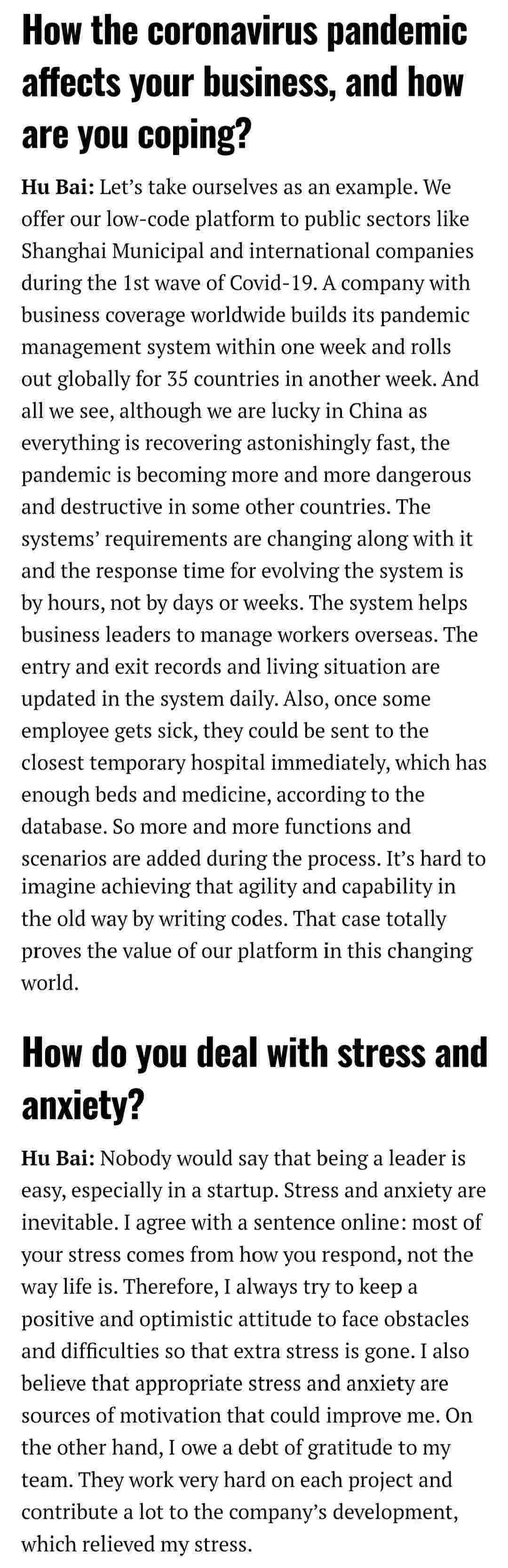 2021年年初,,,,爱湃斯科技CEO胡柏受邀接受法媒Startup.info的专访,,与Startup info的读者分享了自己的创业经历、、、、以及低代码平台VIVO钱包的创新之处。。